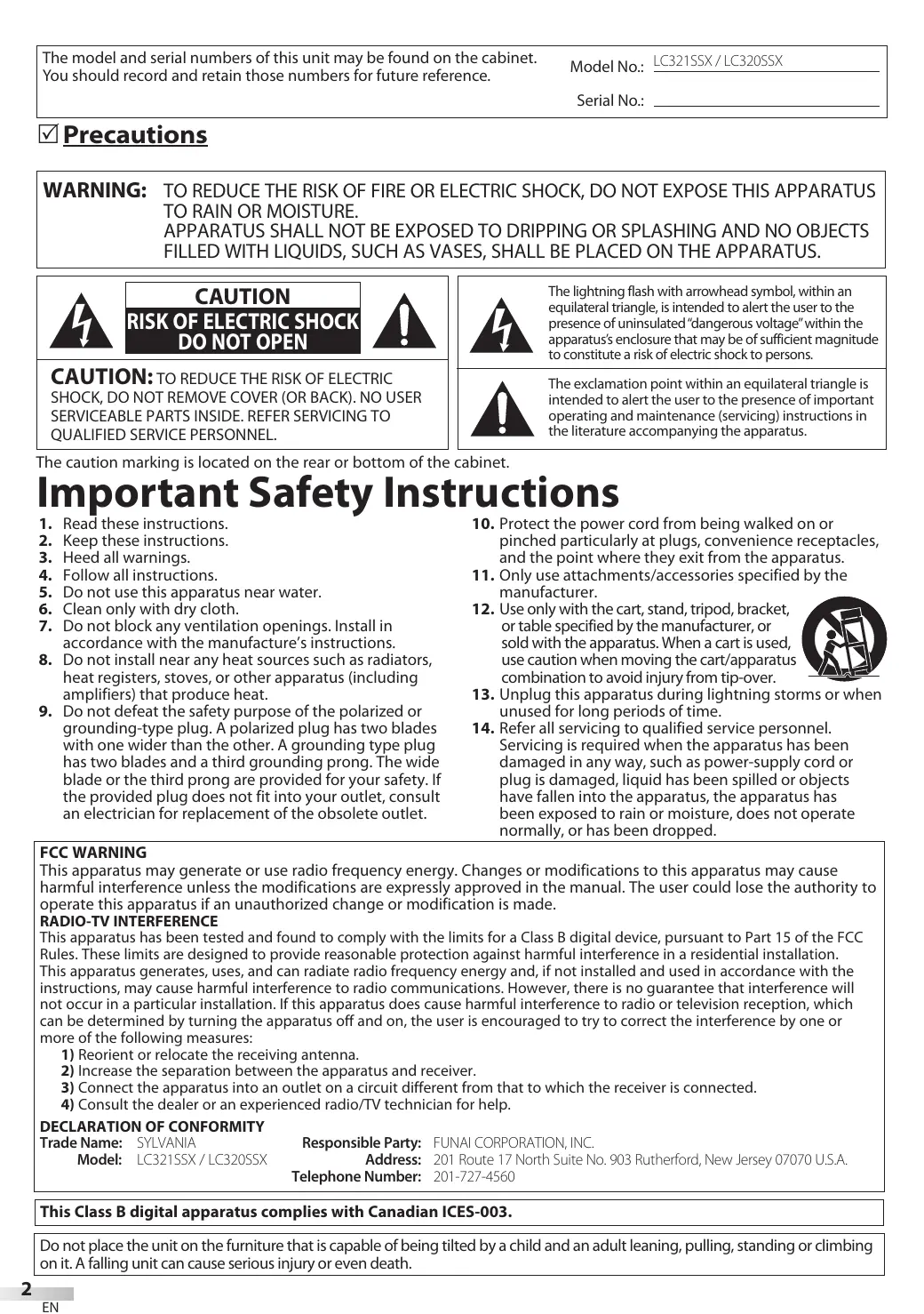 LC321SSX - TV SYLVANIA - Free user manual and instructions