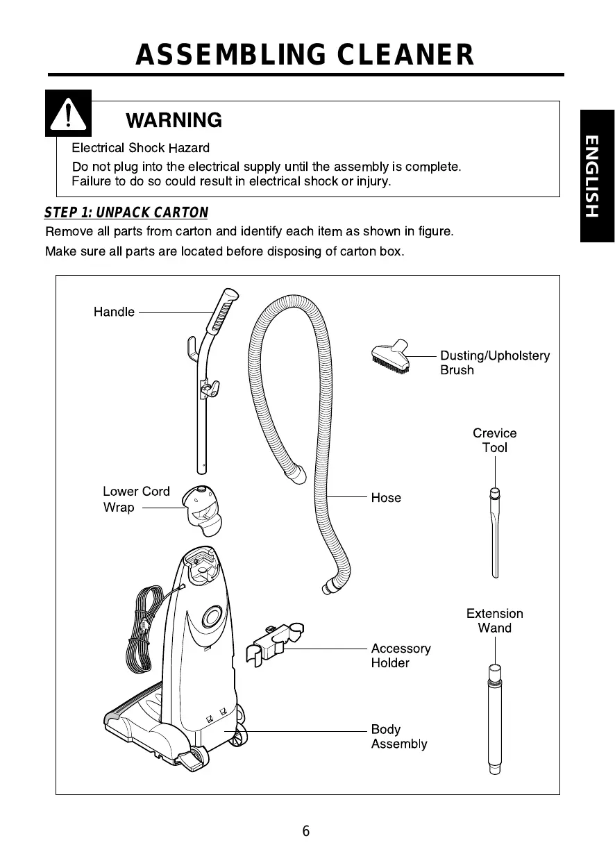 DO NOT LEAVE CLEANER UNATTENDED - WARNING - FULLY ASSEMBLE CLEANER BEFORE OPERATING