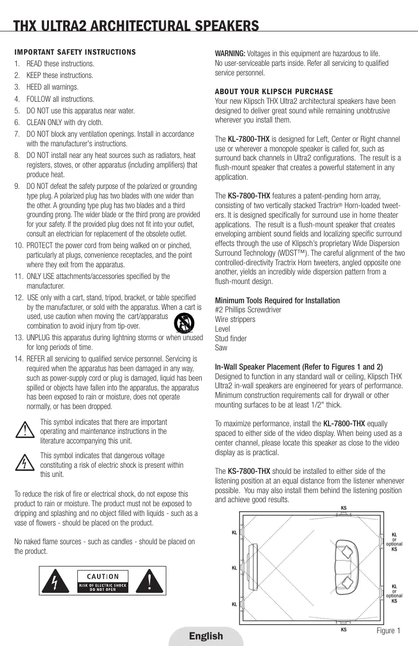 USER MANUAL THX ULTRA2 IN-WALL KLIPSCH