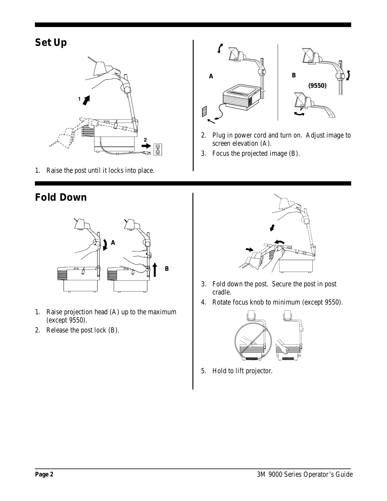 3. Focus the projected image (B). 1. Raise the post until it locks into place.