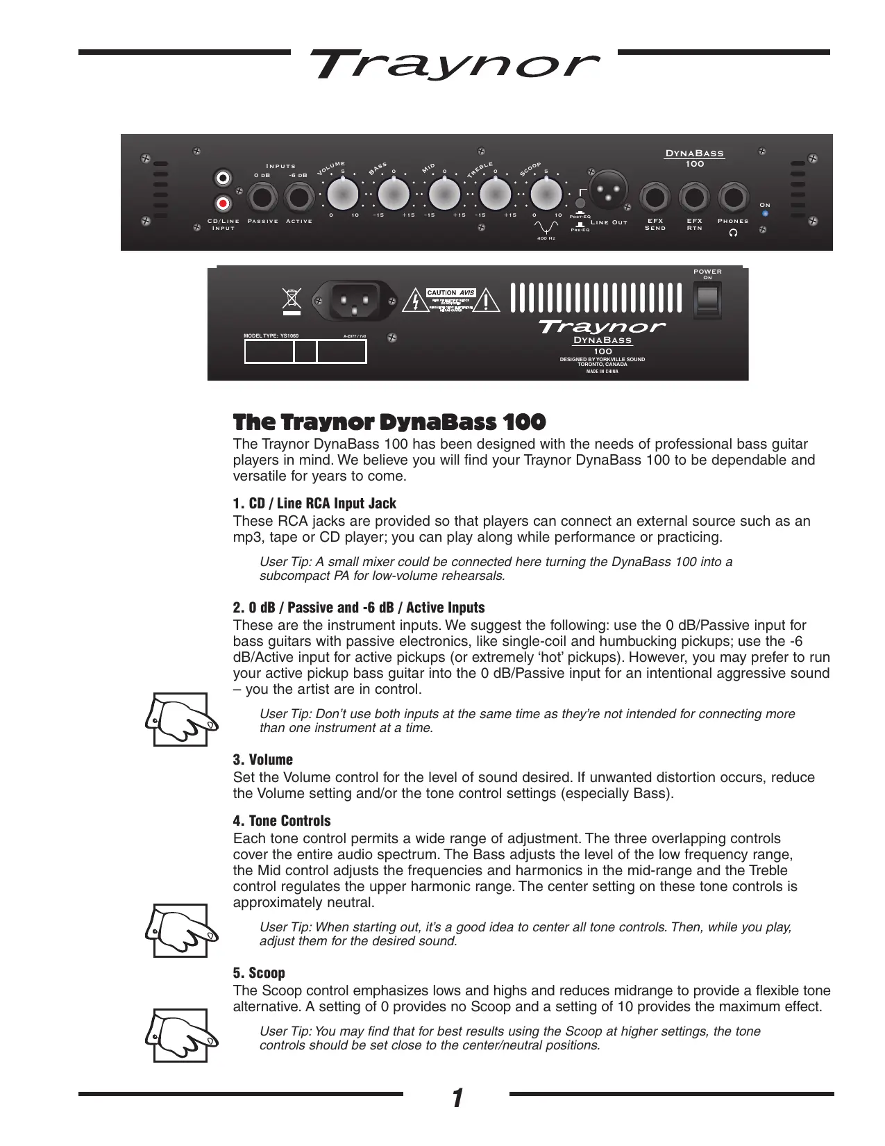 The Traynor DynaBass 100 The Traynor DynaBass 100 has been designed with the needs of professional bass guitar players in mind. We believe you will find your Traynor DynaBass 100 to be dependable and versatile for years to come.