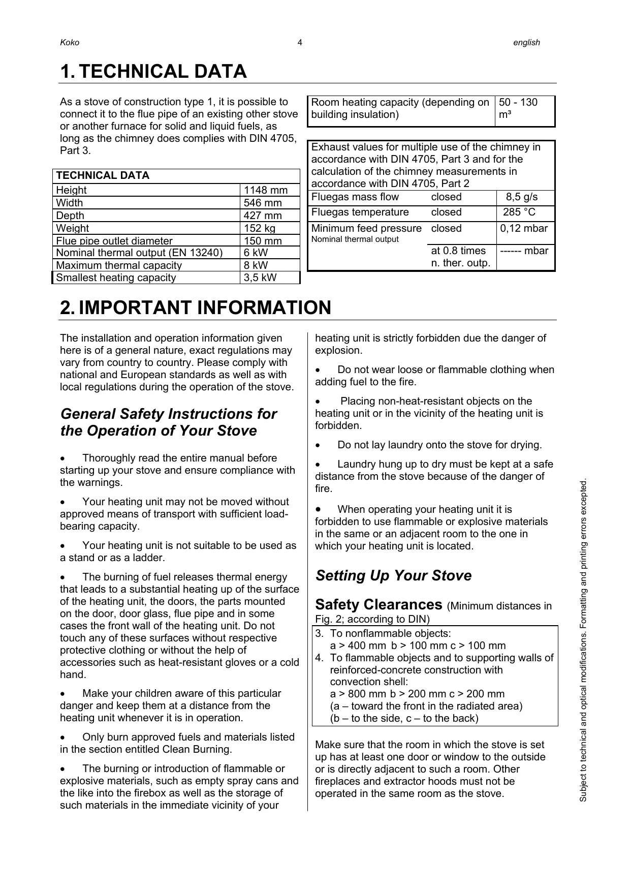 The installation and operation information given here is of a general nature, exact regulations may vary from country to country. Please comply with national and European standards as well as with local regulations during the operation of the stove.