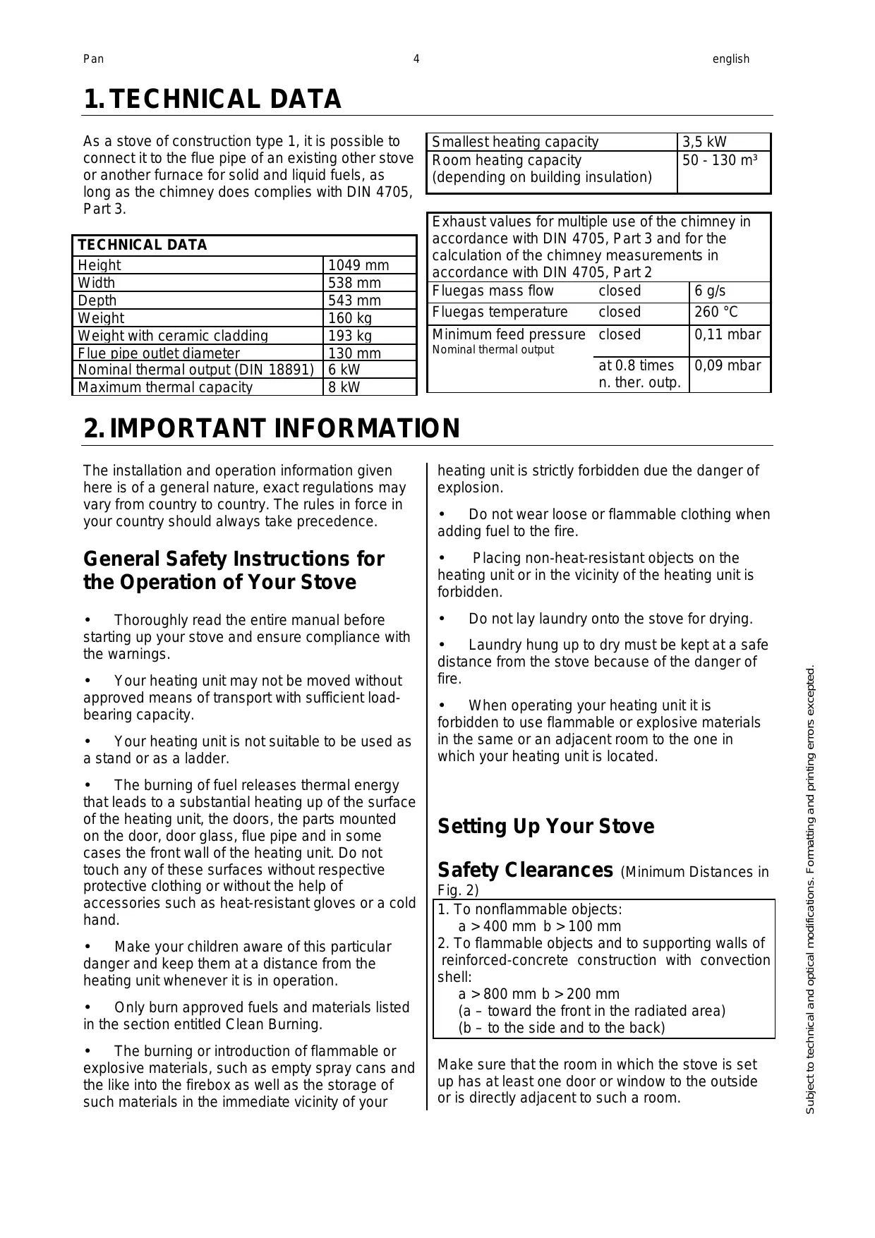 As a stove of construction type 1, it is possible to connect it to the flue pipe of an existing other stove or another furnace for solid and liquid fuels, as long as the chimney does complies with DIN 4705, Part 3.