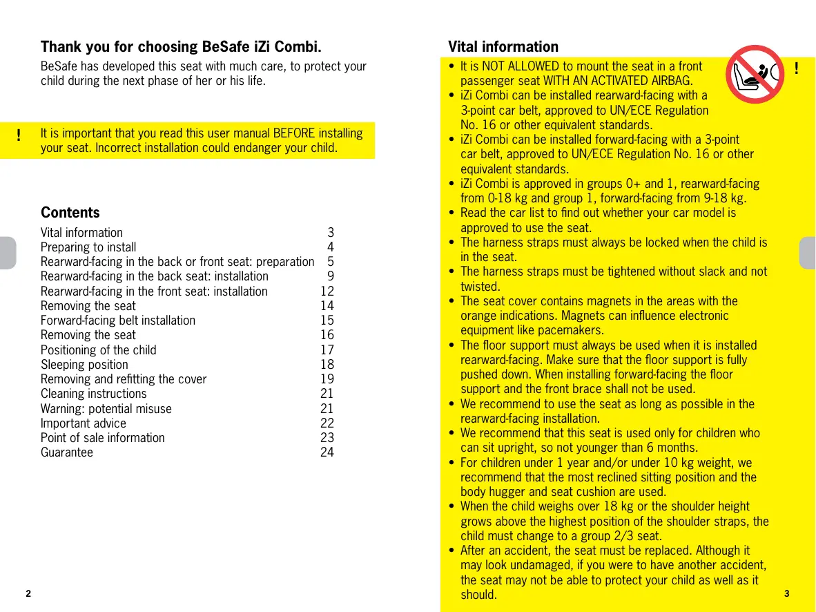 Download the instructions for your Car seat in PDF format for free! Find your manual IZI COMBI - BESAFE and take your electronic device back in hand. On this page are published all the documents necessary for the use of your device. IZI COMBI by BESAFE.