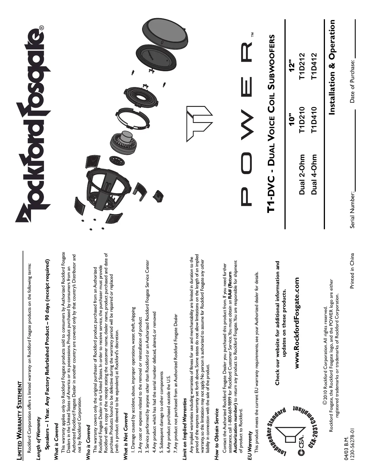 | Dual 2-Ohm | T1D210 | T1D212 |