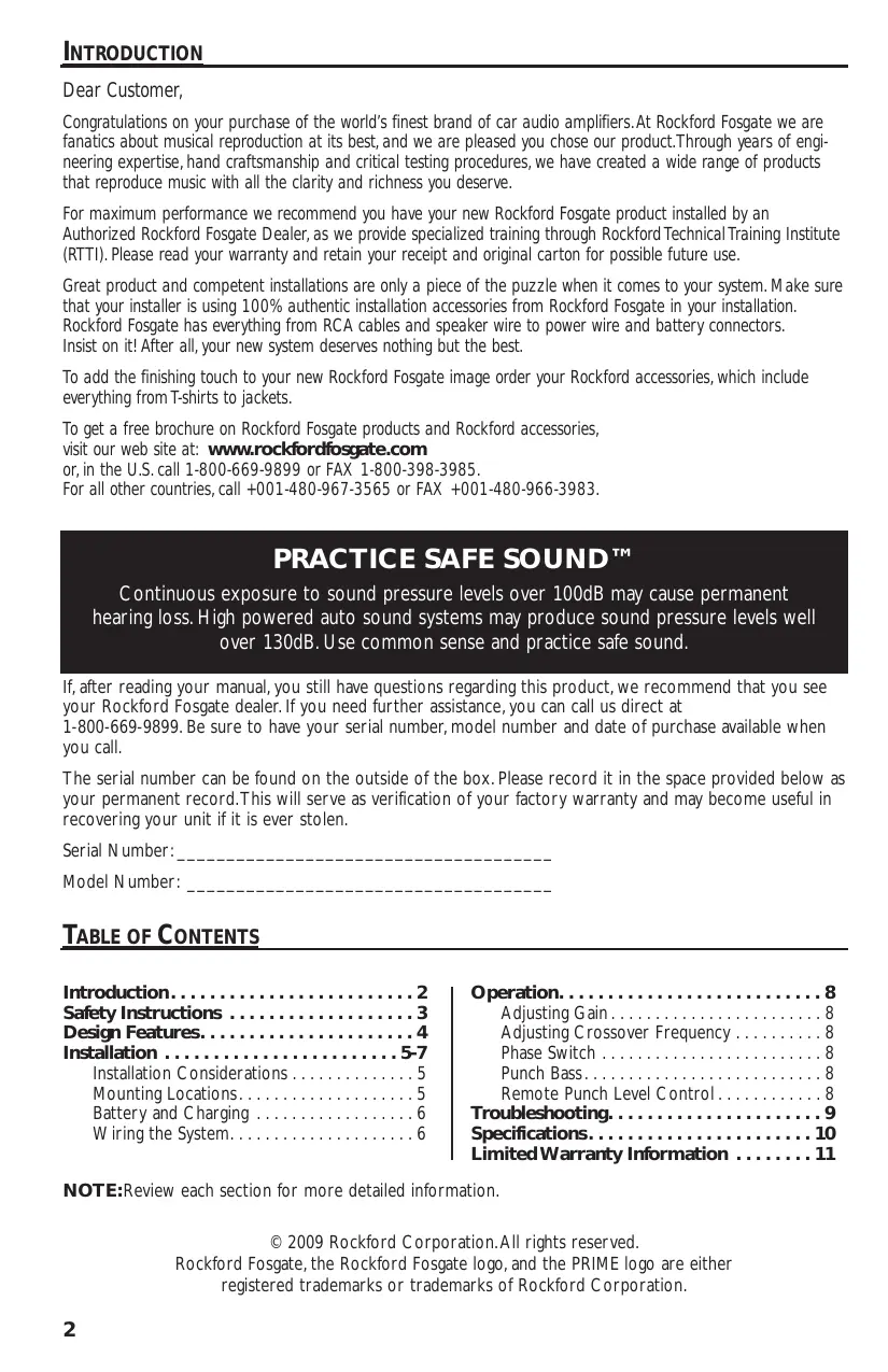 Welcome to Rockford Fosgate! This manual is designed to provide information for the owner, salesperson and installer. For those of you who want quick information on how to install this product, please turn to the Installation Section of this manual. Other information can be located by using the Table of Contents. We, at Rockford Fosgate, have worked very hard to make sure all the information in this manual is current. But, as we are constantly finding new ways to improve our product, this information is subject to change without notice.