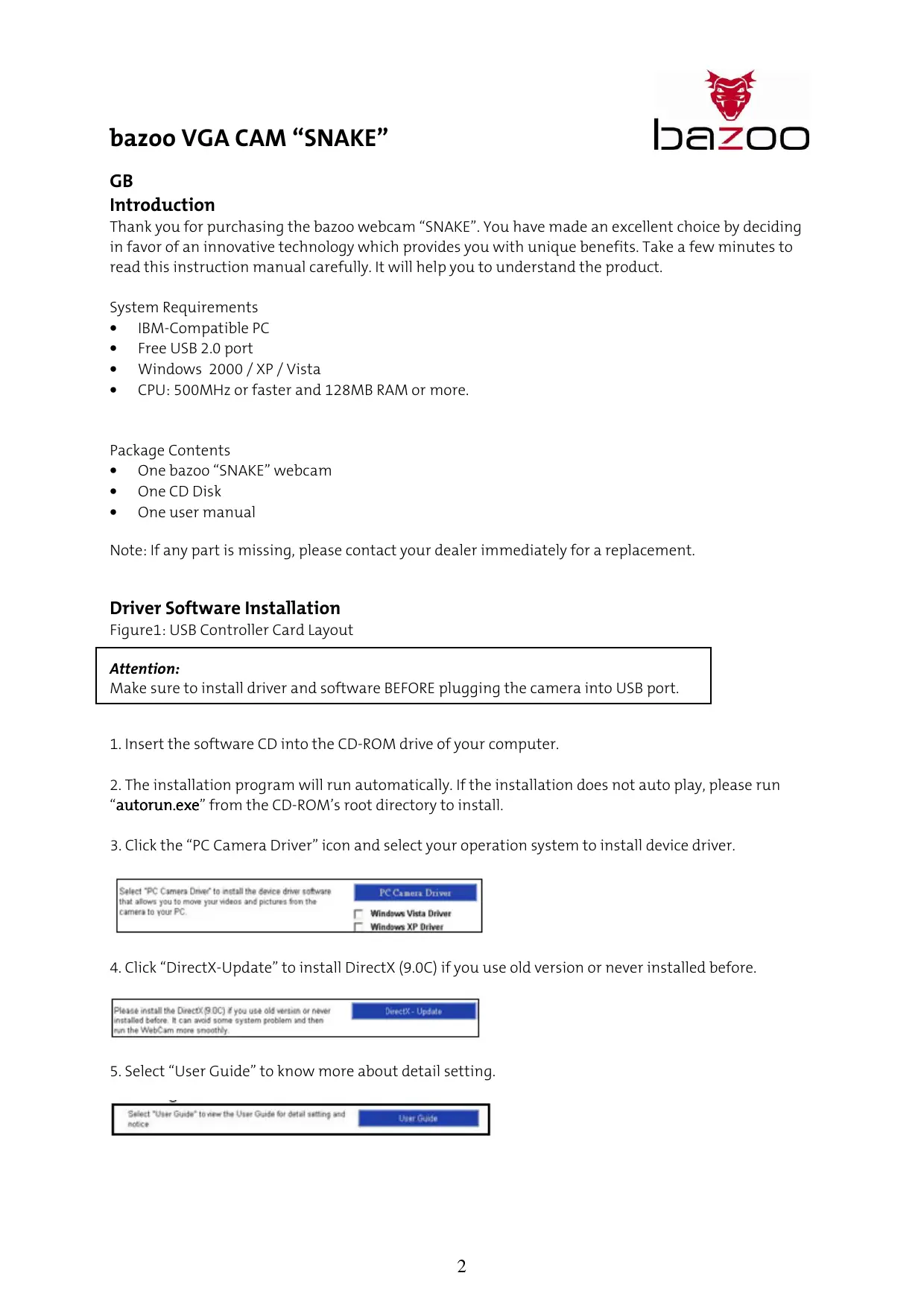 Thank you for purchasing the bazoo webcam "SNAKE". You have made an excellent choice by deciding in favor of an innovative technology which provides you with unique benefits. Take a few minutes to read this instruction manual carefully. It will help you to understand the product.