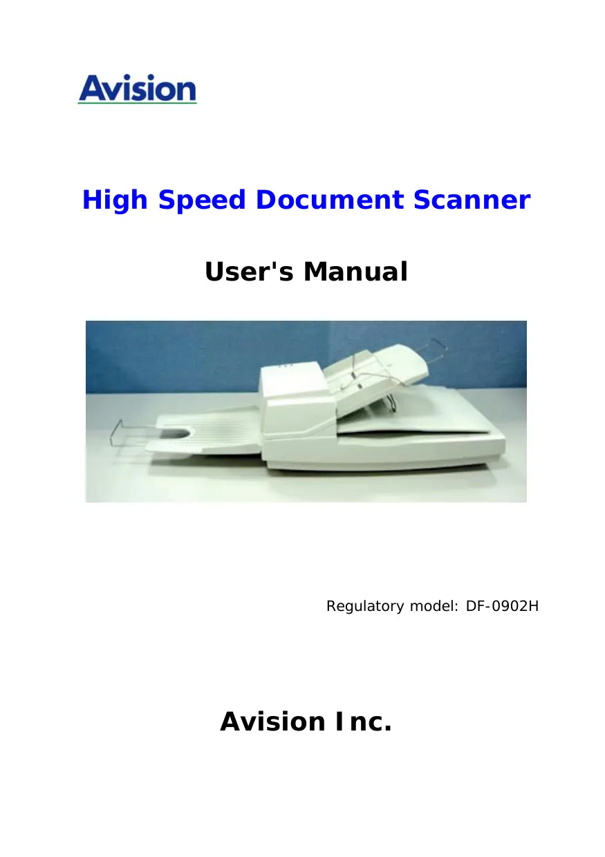 Avision High Speed Document Scanner User's Manual Regulatory model: DF-0902H Avision Inc.