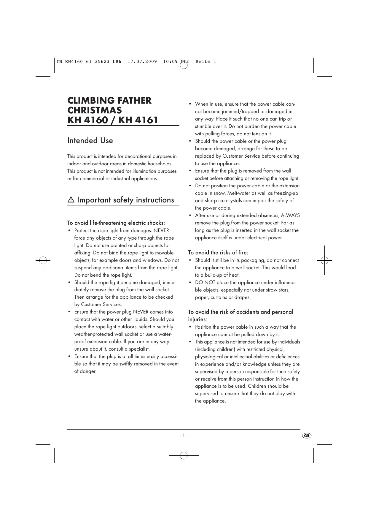 - Should the rope light become damaged, immediately remove the plug from the wall socket. Then arrange for the appliance to be checked by Customer Services.