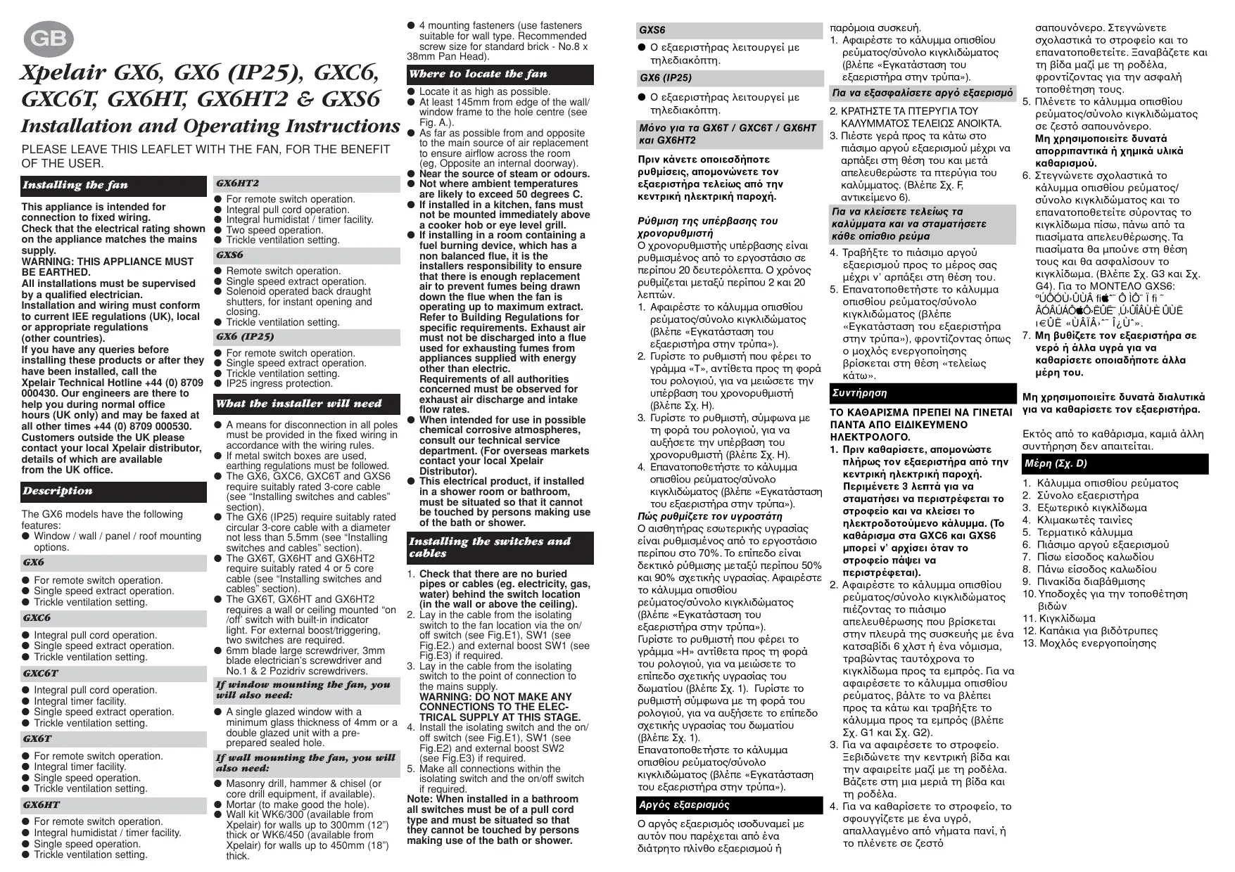 - Guarantee: Contact your local distributor or Xpelair direct for details.