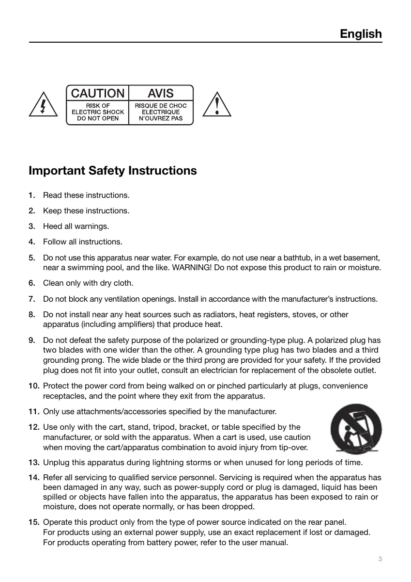 14. Refer all servicing to qualified service personnel. Servicing is required when the apparatus has