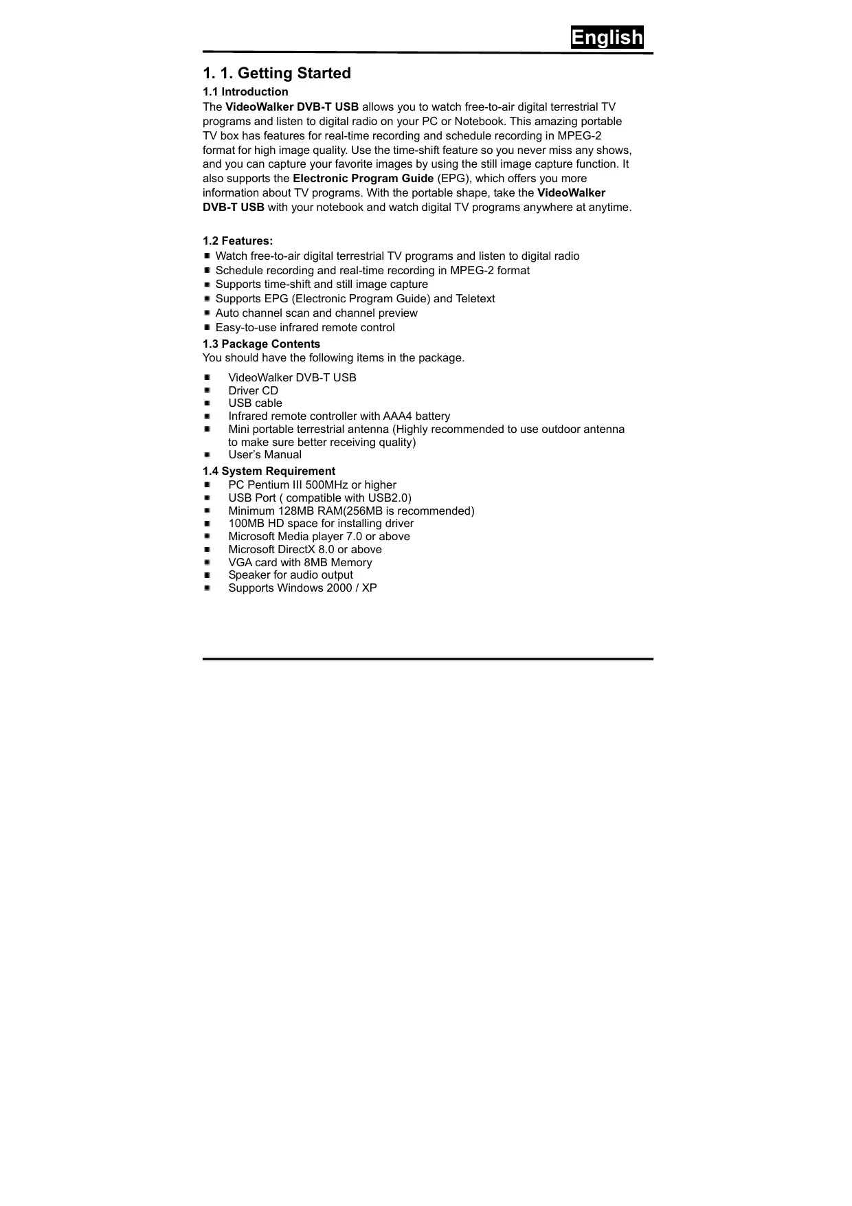 = Watch free-to-air digital terrestrial TV programs and listen to digital radio = Schedule recording and real-time recording in MPEG-2 format = Supports time-shift and still image capture = Supports EPG (Electronic Program Guide) and Teletext = Auto channel scan and channel preview = Easy-to-use infrared remote control