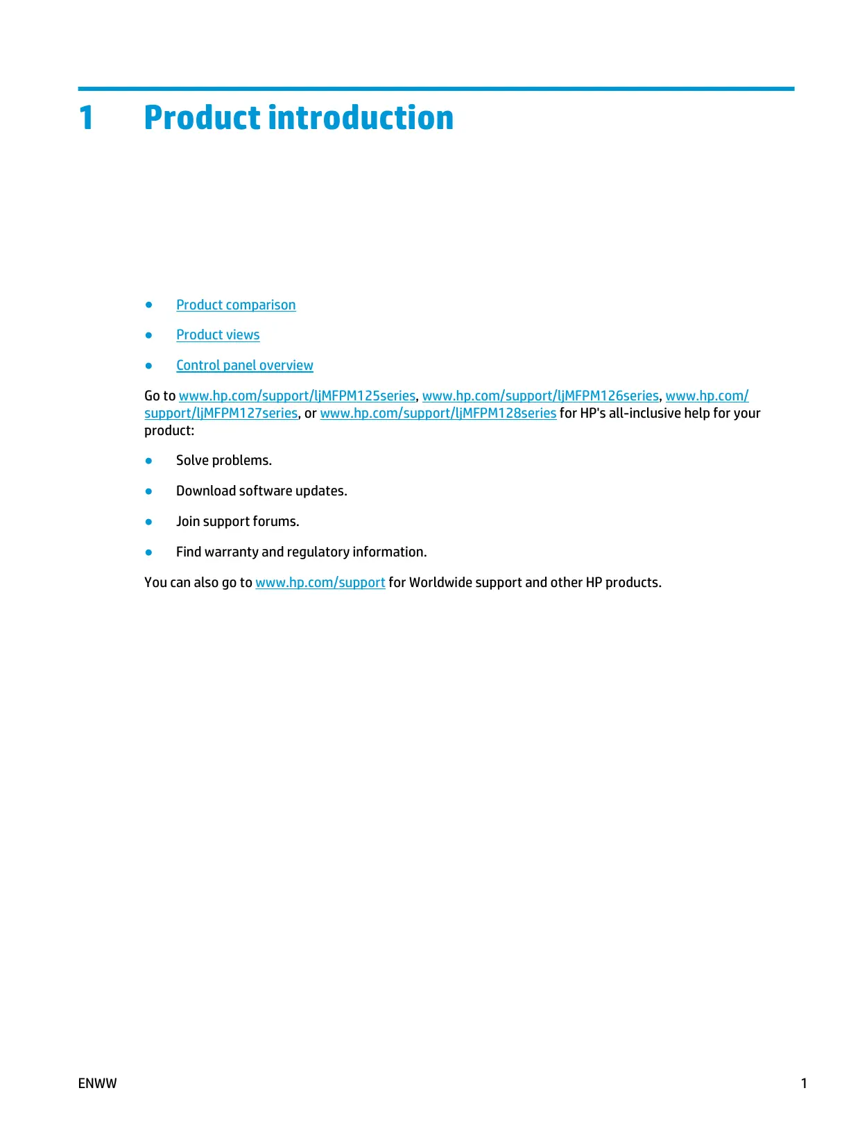 2 Chapter 1 Product introduction ENWW M125a, M125r, M125ra, M126a