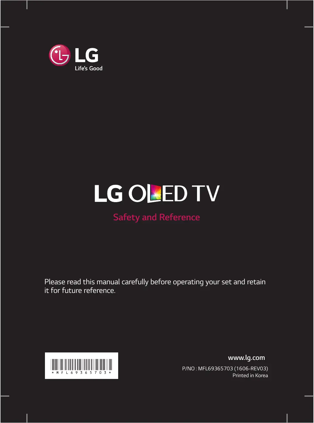 Safety and Reference Please read this manual carefully before operating your set and retain it for future reference. *MFL69365703* www.lg.com P/NO : MFL69365703 (1606-REV03) Printed in Korea Safety instructions ENGLISH Please read these safety precautions carefully before using the product. WARNING Do not place the TV and/or remote control in the following environments:
