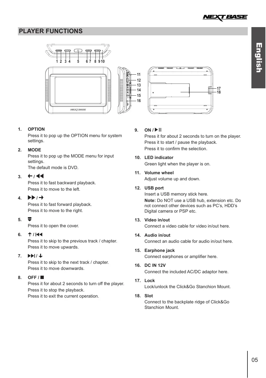 Note: When the player or monitor is not used for around 5 minutes, the player or monitor will turn off automatically.
