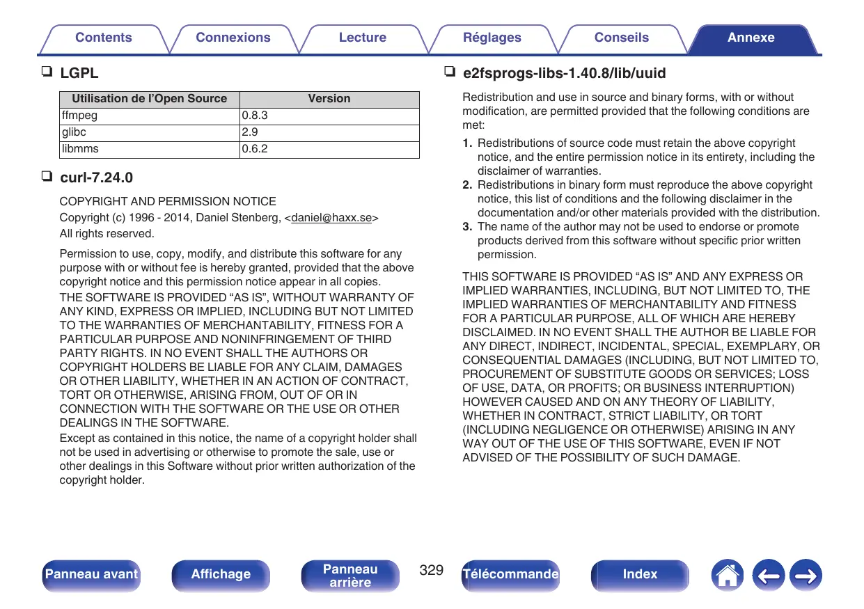 | Vidéo | 480i/576i | ✓ | ✓ | ✓ | ✓ | ✓ | ✓ | ✓ | ✓ |