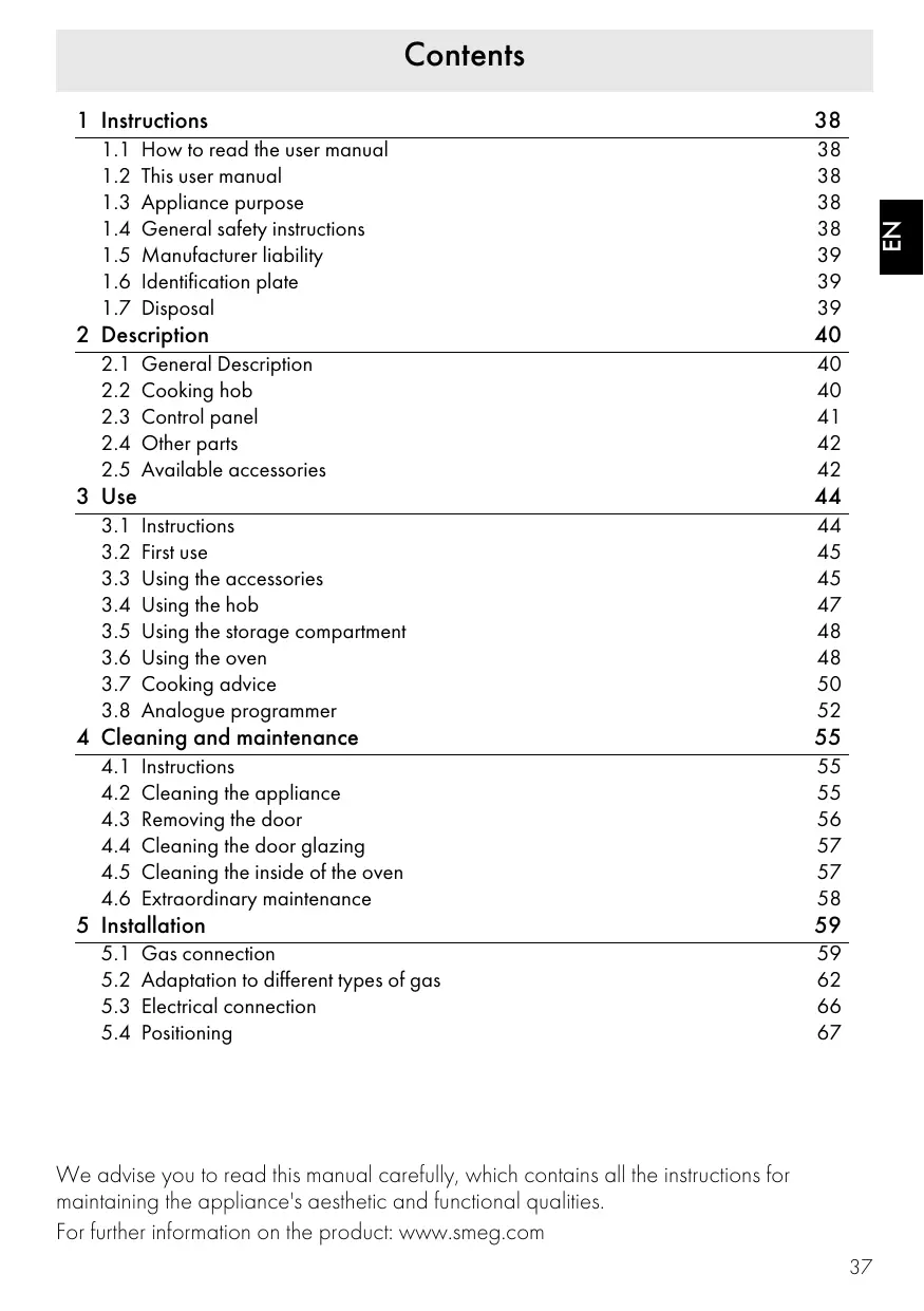 USER MANUAL CG92X9 SMEG