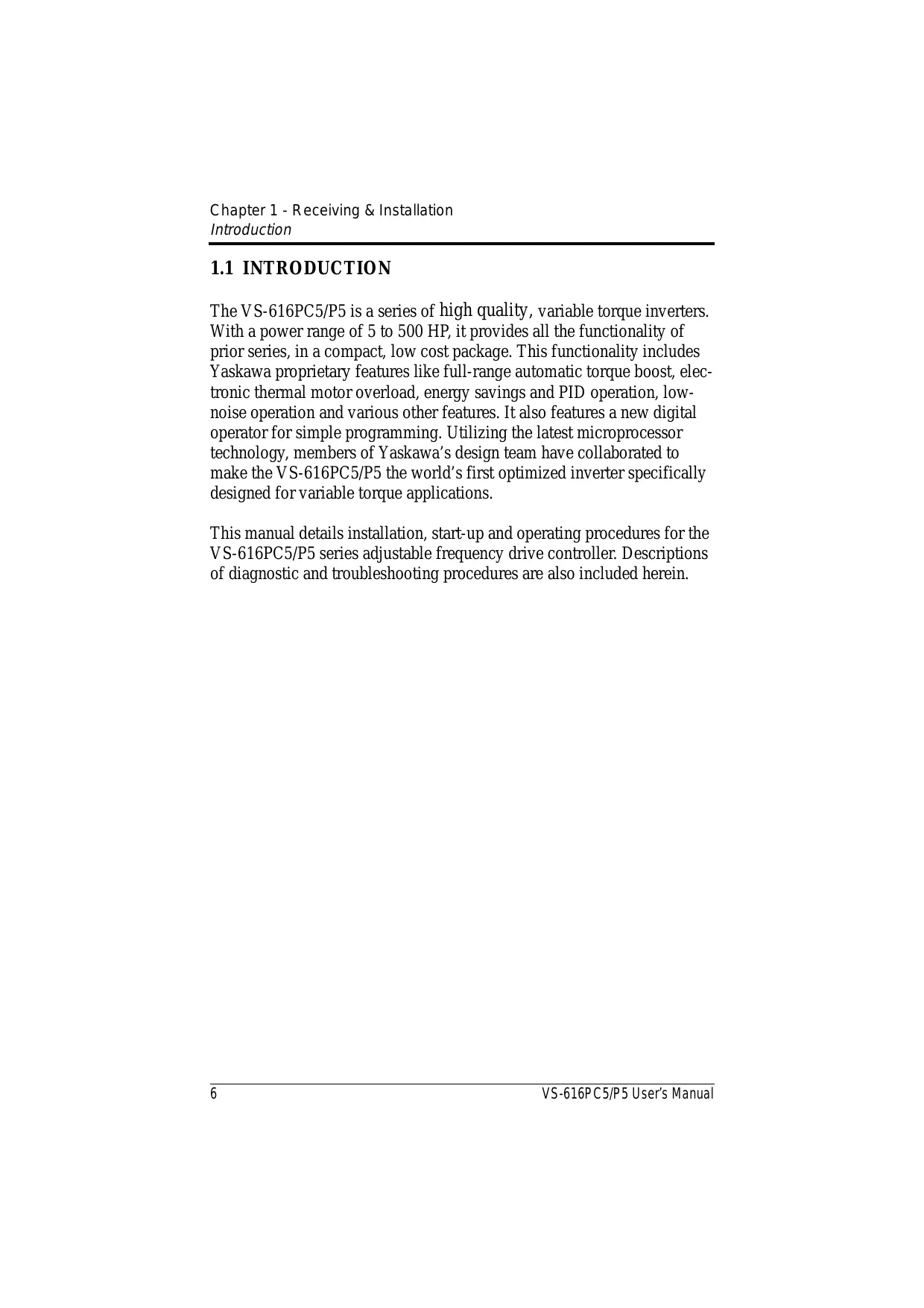 1) Read this manual in its entirety before installing or operating the VS-616PC5/P5 inverter. This manual applies to inverters with software versions 5110 and 5120 only and is not intended to be used in conjunction with any other software.