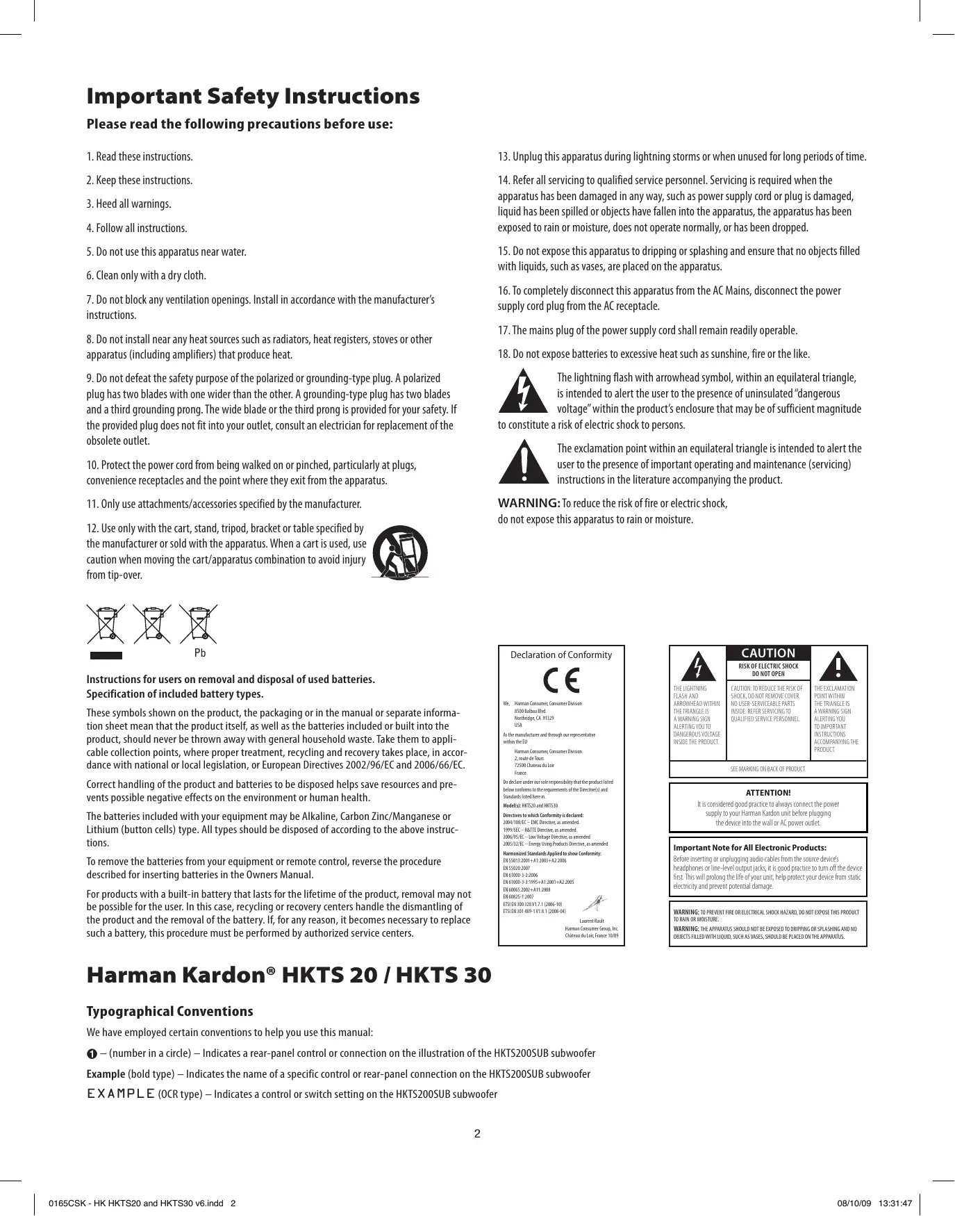 Download the instructions for your Enceintes home cinéma in PDF format for free! Find your manual HKTS 35 - HARMAN KARDON and take your electronic device back in hand. On this page are published all the documents necessary for the use of your device. HKTS 35 by HARMAN KARDON.