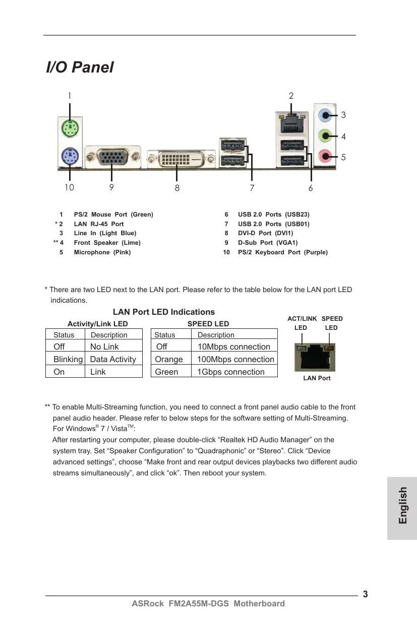 OUT2_L J_SENSE OUT2_R MIC2_R MIC2_L Windows® 7 / 7 64-bit / VistaTM / VistaTM 64-bit OS