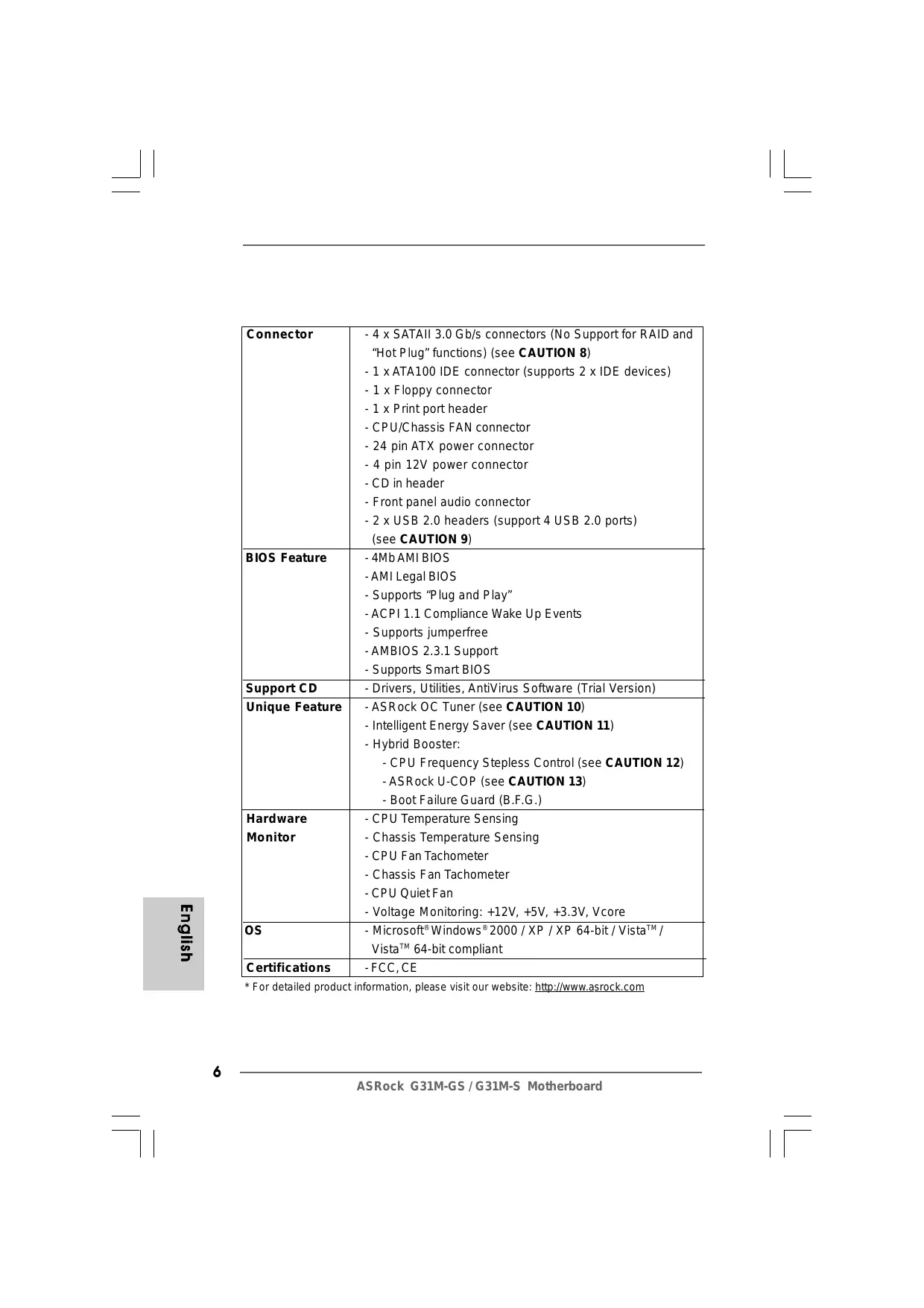 USER MANUAL G31M-GS ASROCK