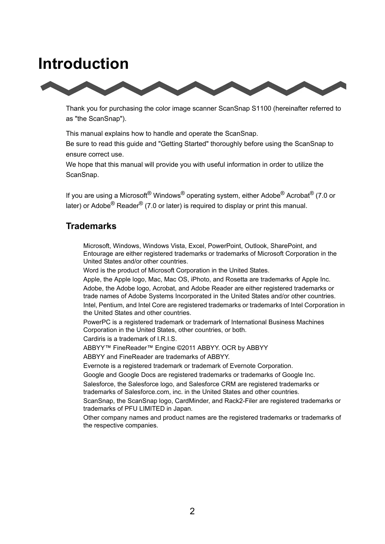 ScanSnap, the ScanSnap logo, CardMinder, and Rack2-Filer are registered trademarks or trademarks of PFU LIMITED in Japan.