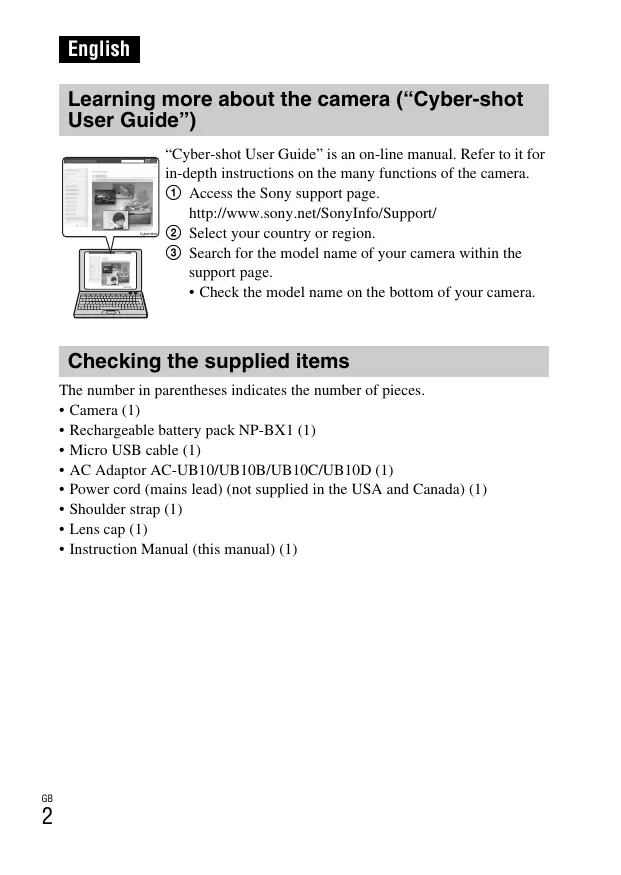 - Check the model name on the bottom of your camera. Checking the supplied items The number in parentheses indicates the number of pieces.