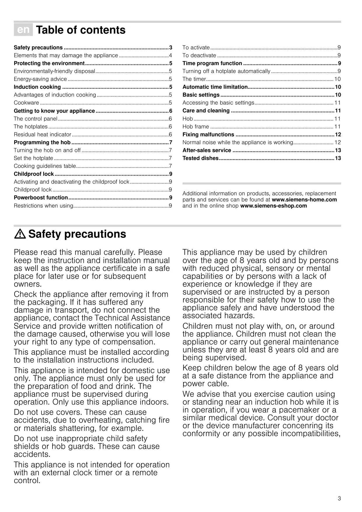 Additional information on products, accessories, replacement parts and services can be found at www.siemens-home.com and in the online shop www.siemens-eshop.com