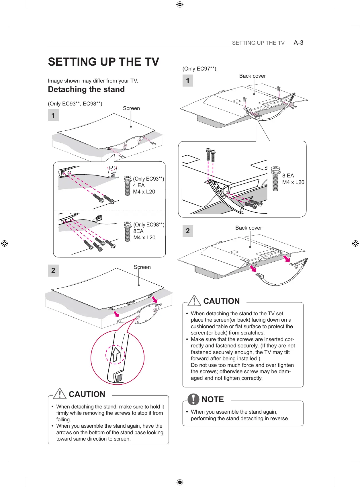 Image shown may differ from your TV. Detaching the stand (Only EC93**, EC98**)