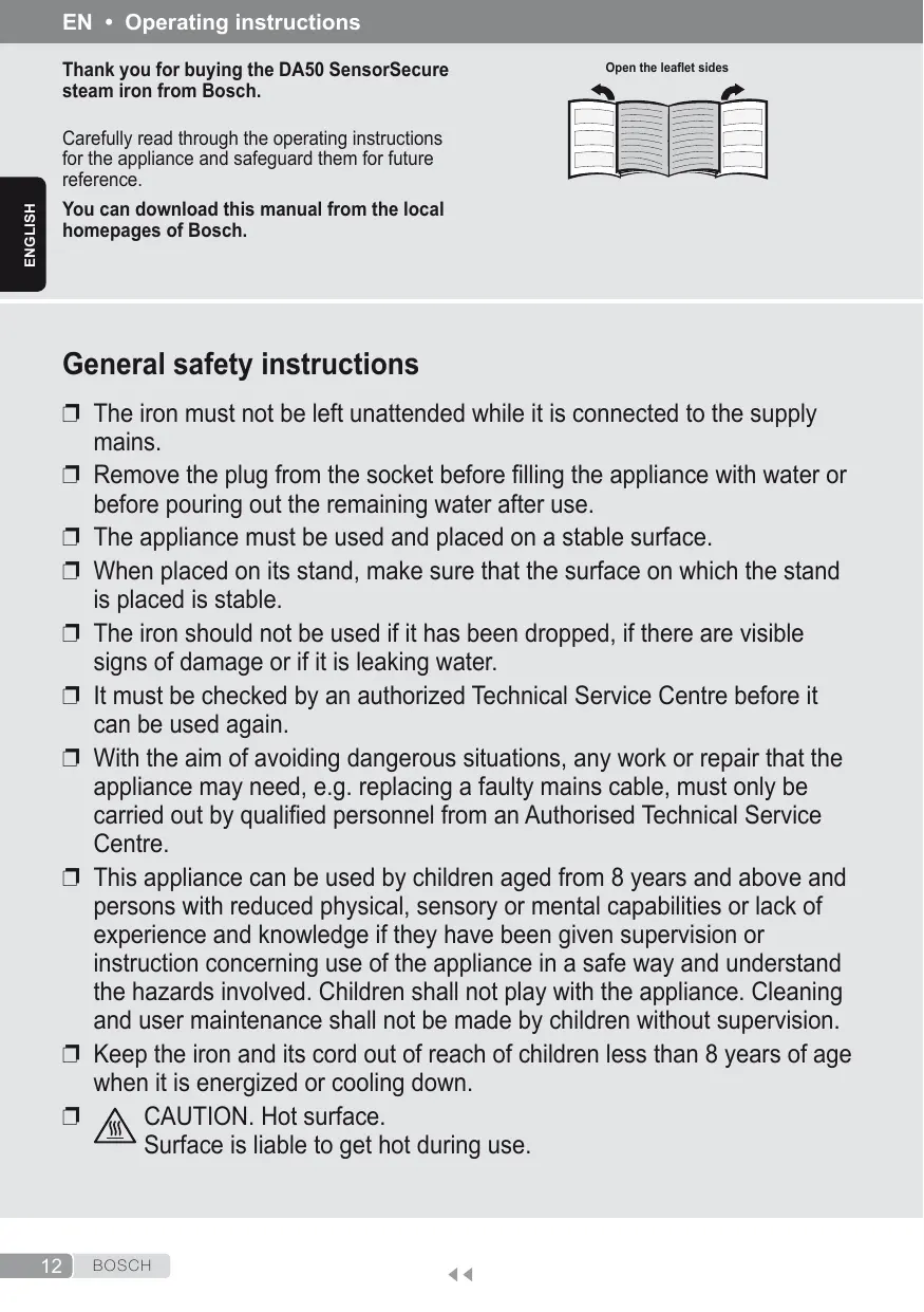 Thank you for buying the DA50 SensorSecure steam iron from Bosch.