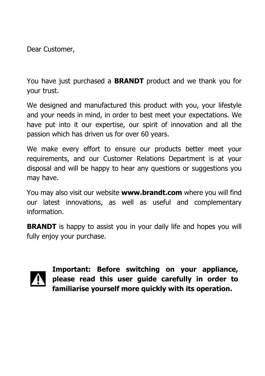 Download the instructions for your Dishwasher in PDF format for free! Find your manual BFD663ZNX - BRANDT and take your electronic device back in hand. On this page are published all the documents necessary for the use of your device. BFD663ZNX by BRANDT.