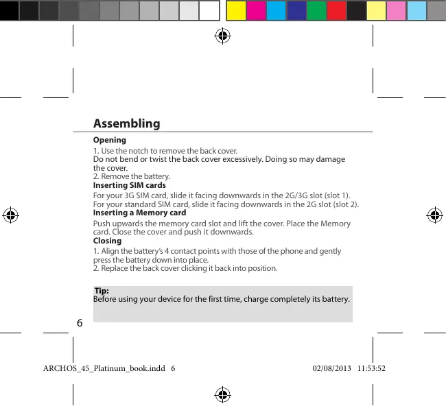 Slot3 Slot2 Slot1 Lift the back cover using the notch Slot1 2G/3G SIM card Slot2 2G SIM card Slot3 Memory card up to 64 GB