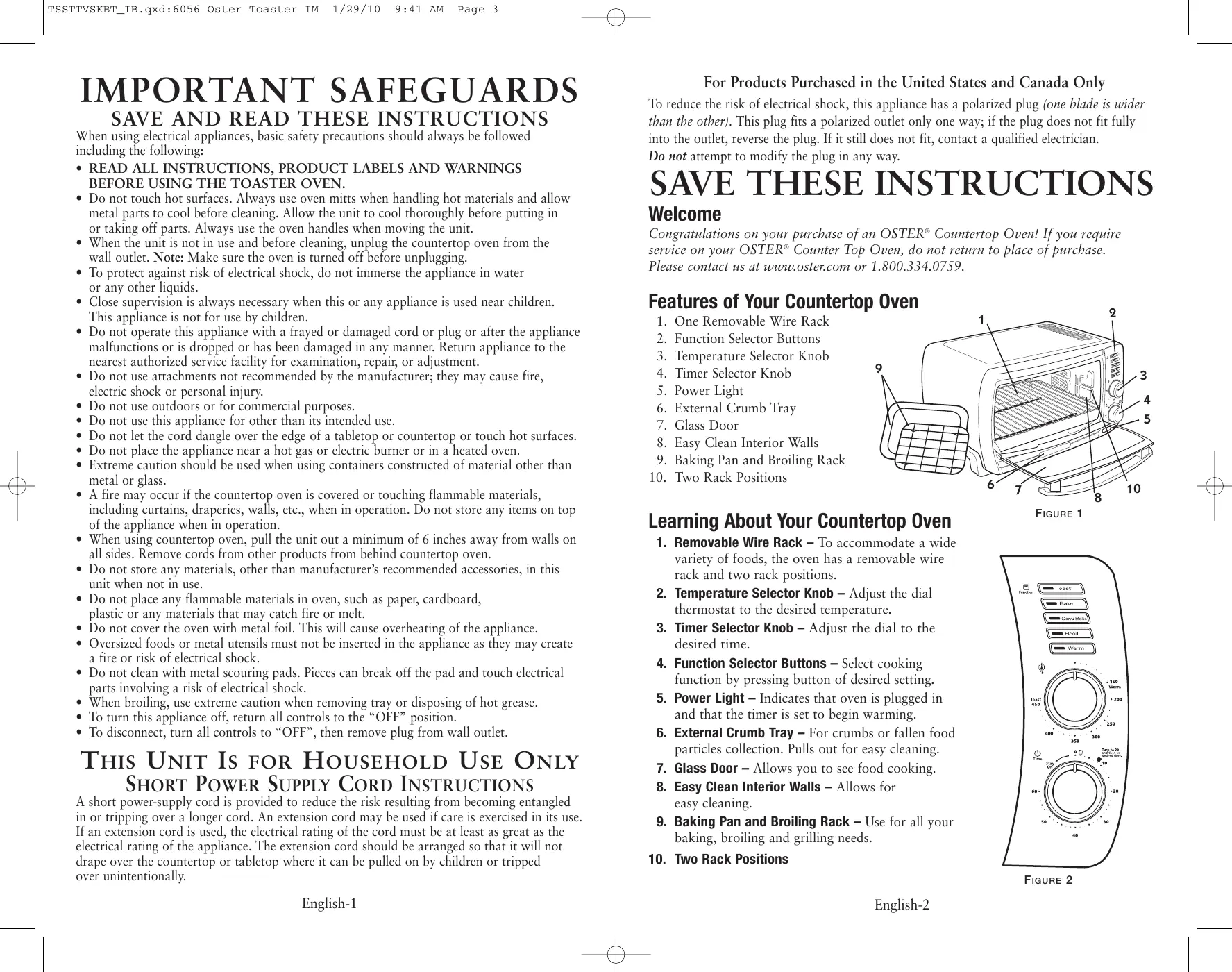 Congratulations on your purchase of an OSTER® Countertop Oven! If you require service on your OSTER® Counter Top Oven, do not return to place of purchase. Please contact us at www.oster.com or 1.800.334.0759.