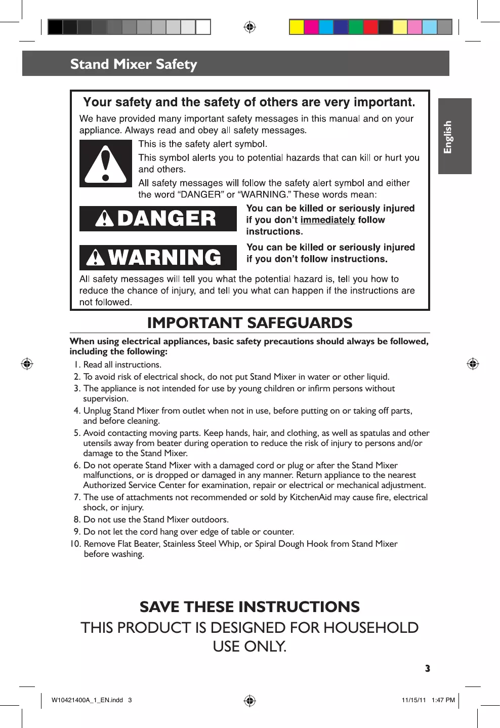 TM Trademark of KitchenAid, U.S.A. The shape of the Stand Mixer is a trademark of KitchenAid, U.S.A. © 2011. All rights reserved. Specifications subject to change without notice. W10421400A