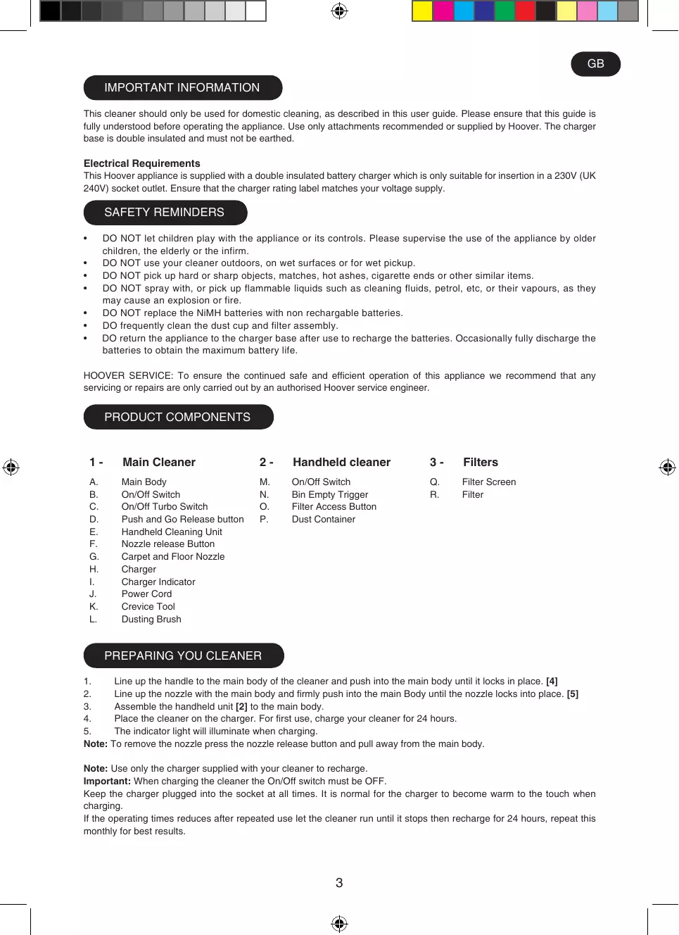 GB USING YOUR CLEANER Main cleaner