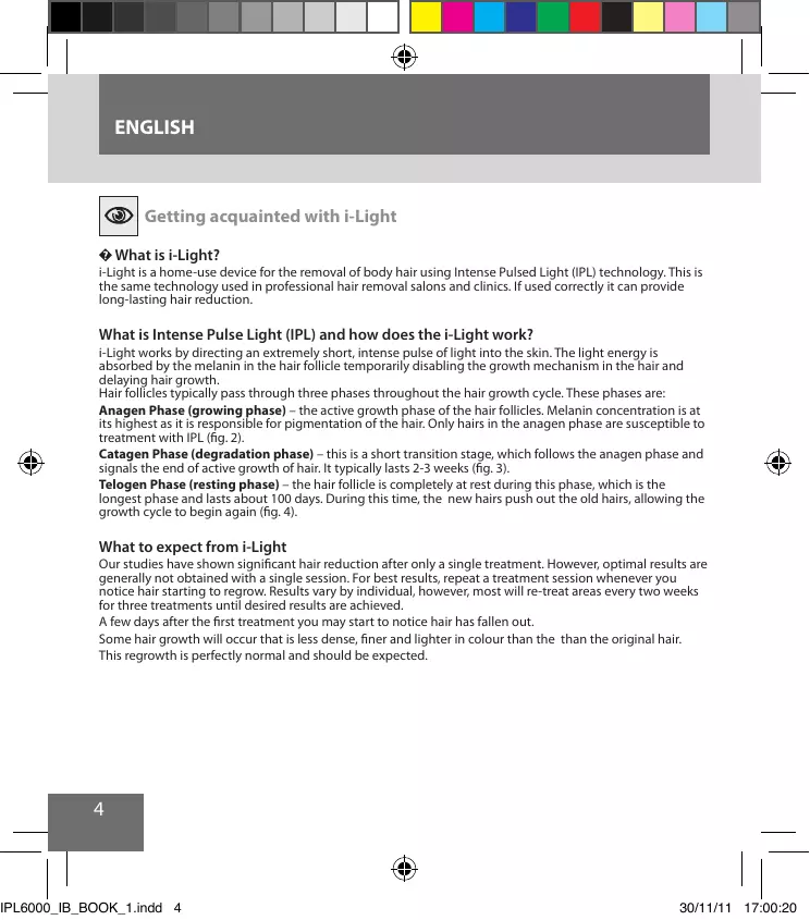 i-Light is a home-use device for the removal of body hair using Intense Pulsed Light (IPL) technology. This is the same technology used in professional hair removal salons and clinics. If used correctly it can provide long-lasting hair reduction.