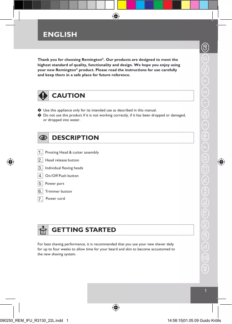 NL E F Thank you for choosing Remington®. Our products are designed to meet the highest standard of quality, functionality and design. We hope you enjoy using your new Remington® product. Please read the instructions for use carefully and keep them in a safe place for future reference.