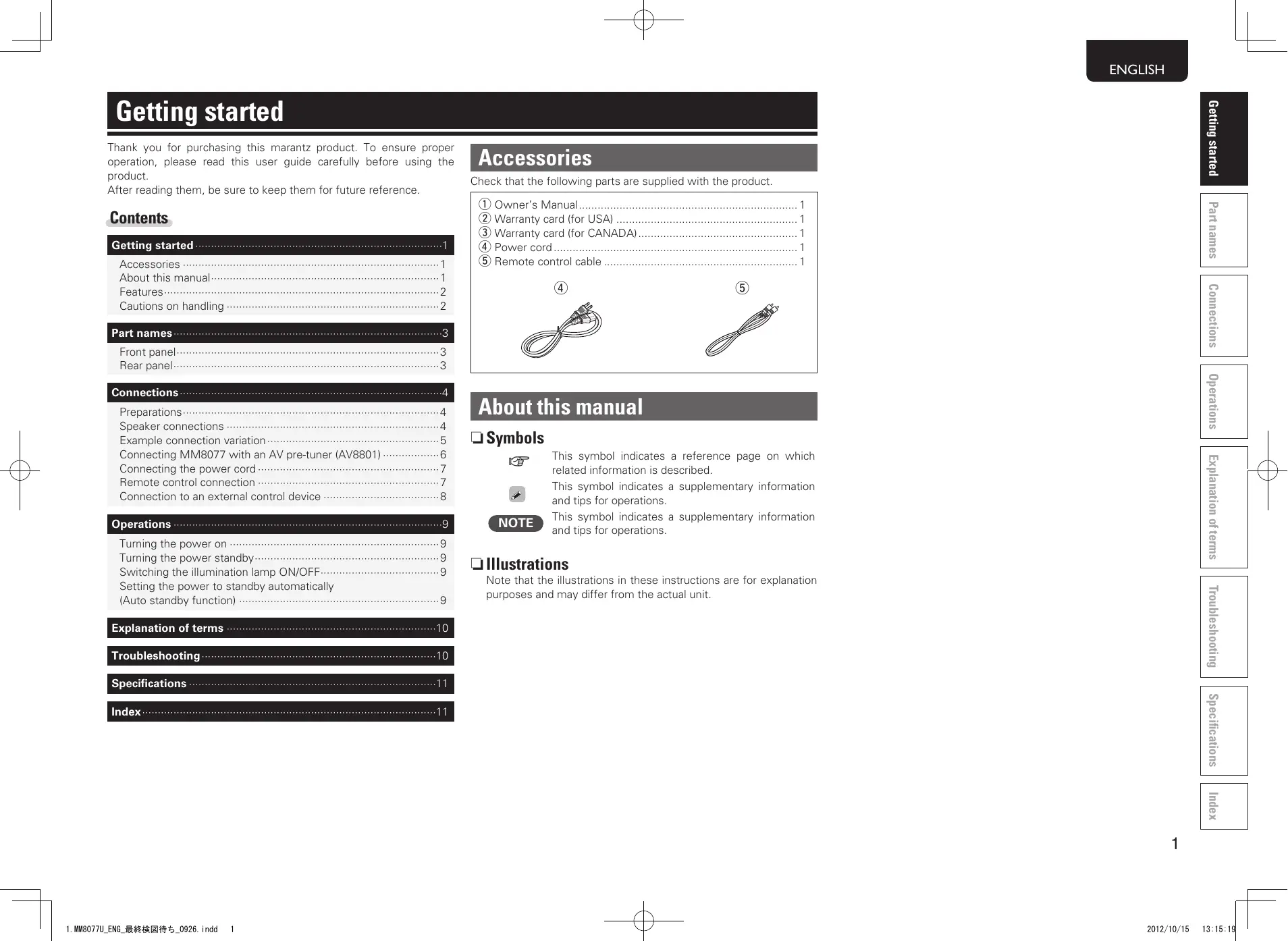 Thank you for purchasing this marantz product. To ensure proper operation, please read this user guide carefully before using the product.