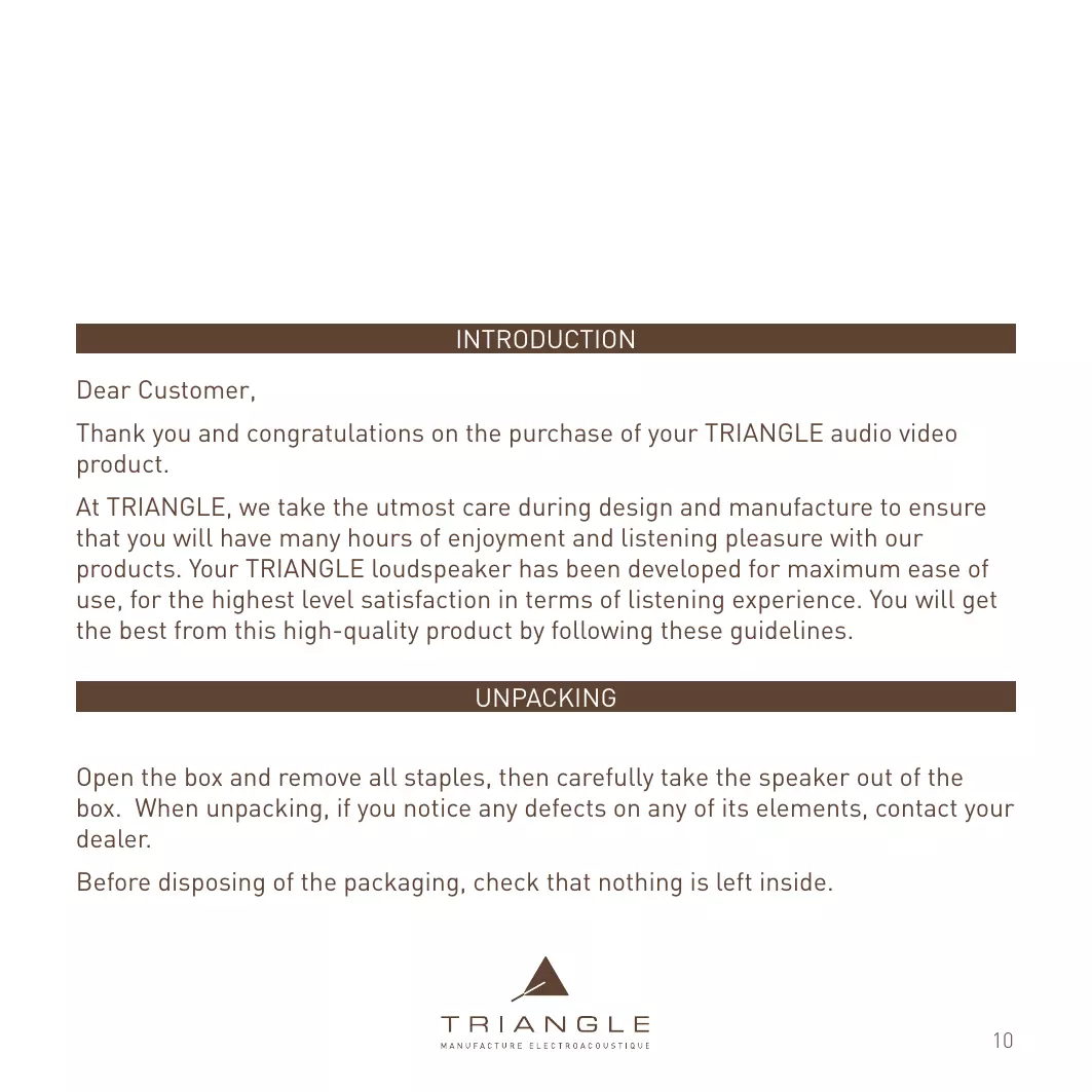 Thank you and congratulations on the purchase of your TRIANGLE audio video product.