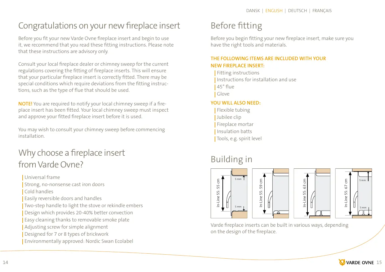 Before you fit your new Varde Ovne fireplace insert and begin to use it, we recommend that you read these fitting instructions. Please note that these instructions are advisory only.