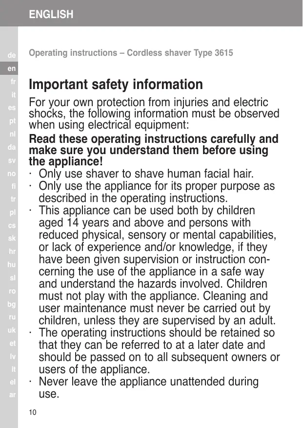 Operating instructions – Cordless shaver Type 3615 10