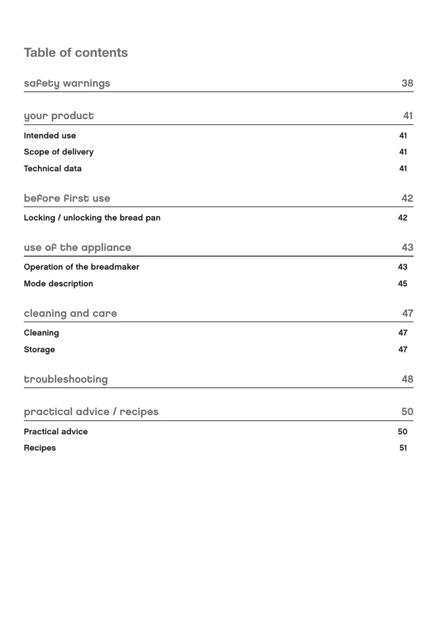 Locking / unlocking the bread pan 42