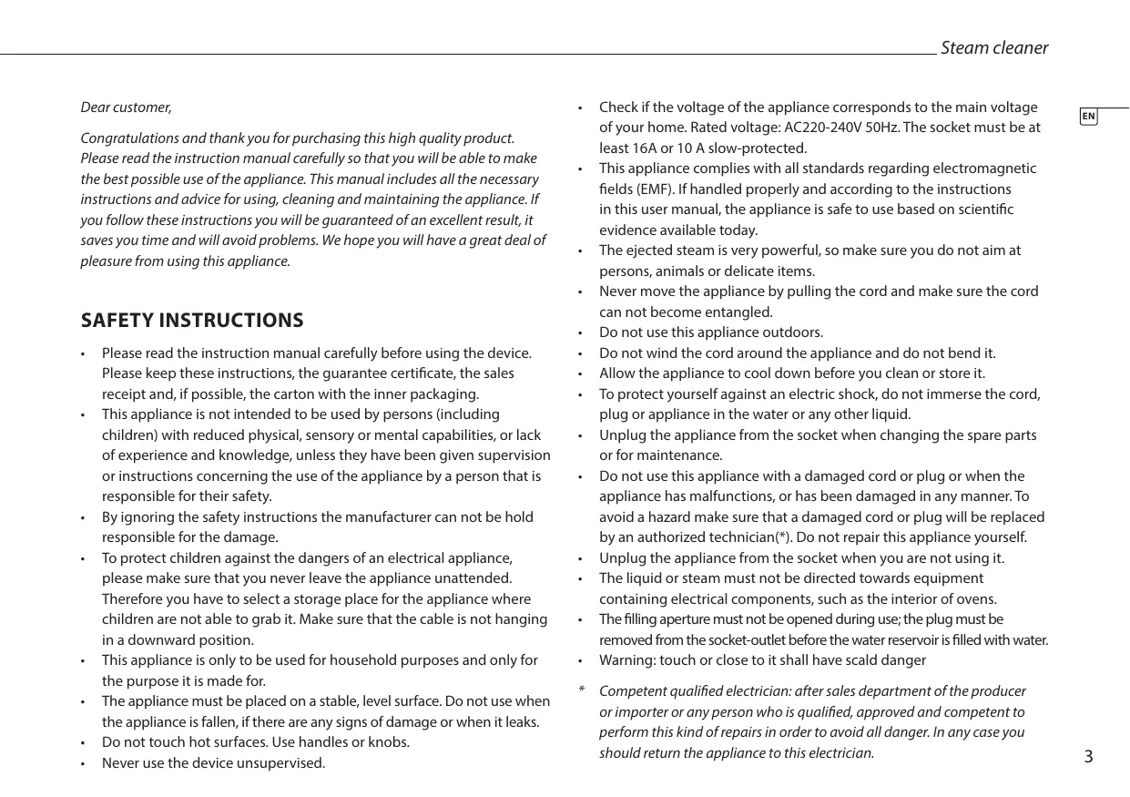 Congratulations and thank you for purchasing this high quality product. Please read the instruction manual carefully so that you will be able to make the best possible use of the appliance. This manual includes all the necessary instructions and advice for using, cleaning and maintaining the appliance. If you follow these instructions you will be guaranteed of an excellent result, it saves you time and will avoid problems. We hope you will have a great deal of pleasure from using this appliance.