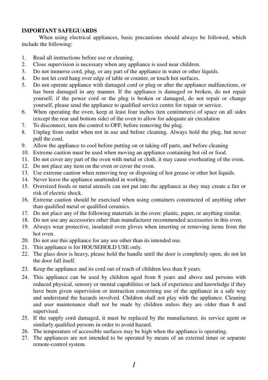 USER MANUAL TKG OT 1020 BCRL - TKG OT 2002 BCRL - TKG OT 2500 R KALORIK