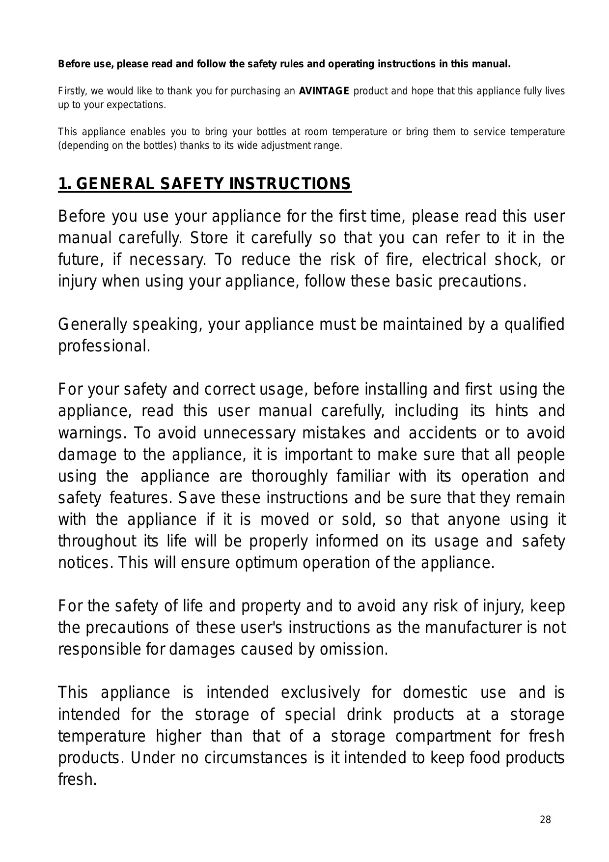 Firstly, we would like to thank you for purchasing an AVINTAGE product and hope that this appliance fully lives up to your expectations.