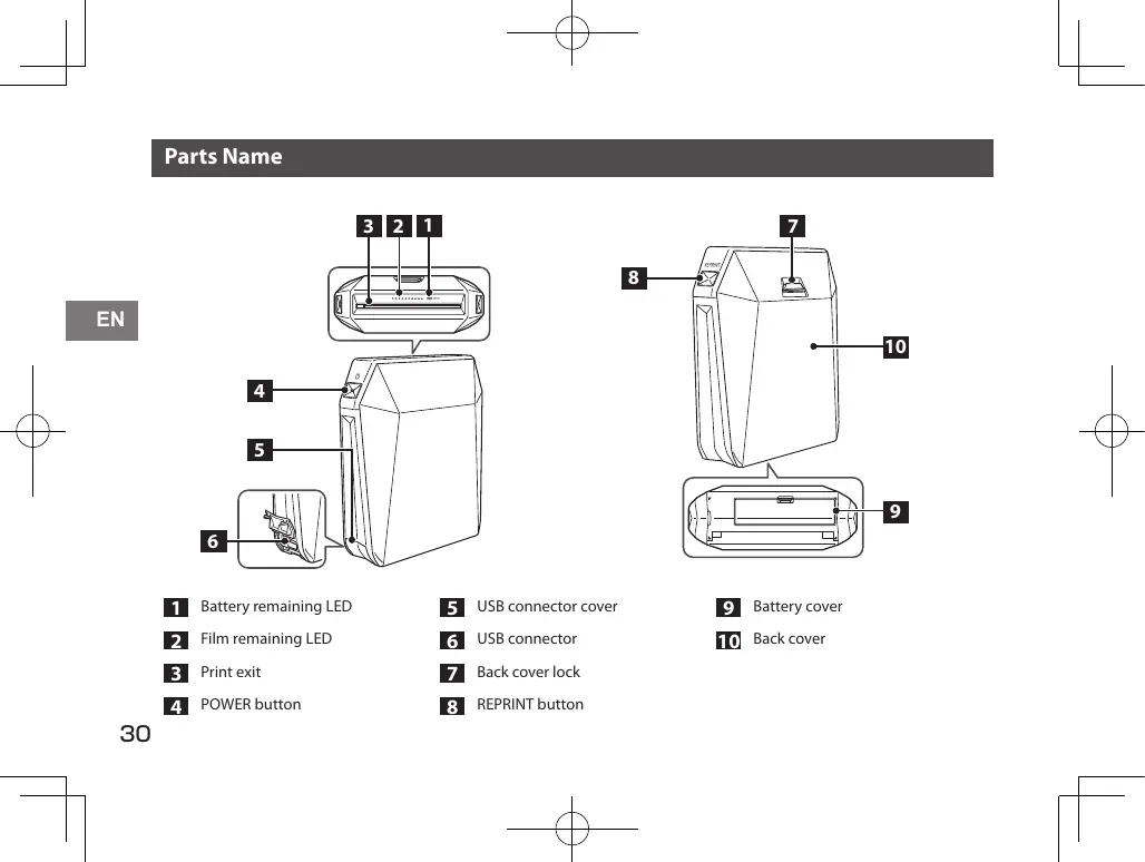 EN When the film has been ejected (the printer stops making a sound), grasp the edge of the film, then take it out. 1 film remaining LED turns off every time you print an image.
