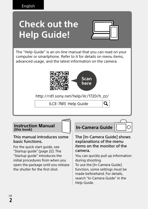 “Help Guide” (Web manual) Refer to “Help Guide” for in-depth instructions on the many functions of the camera.