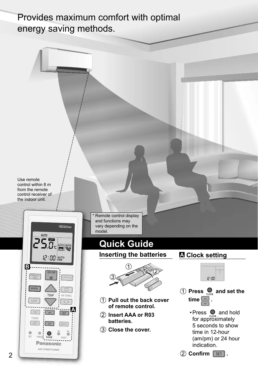 Use remote control within 8 m from the remote control receiver of the indoor unit.