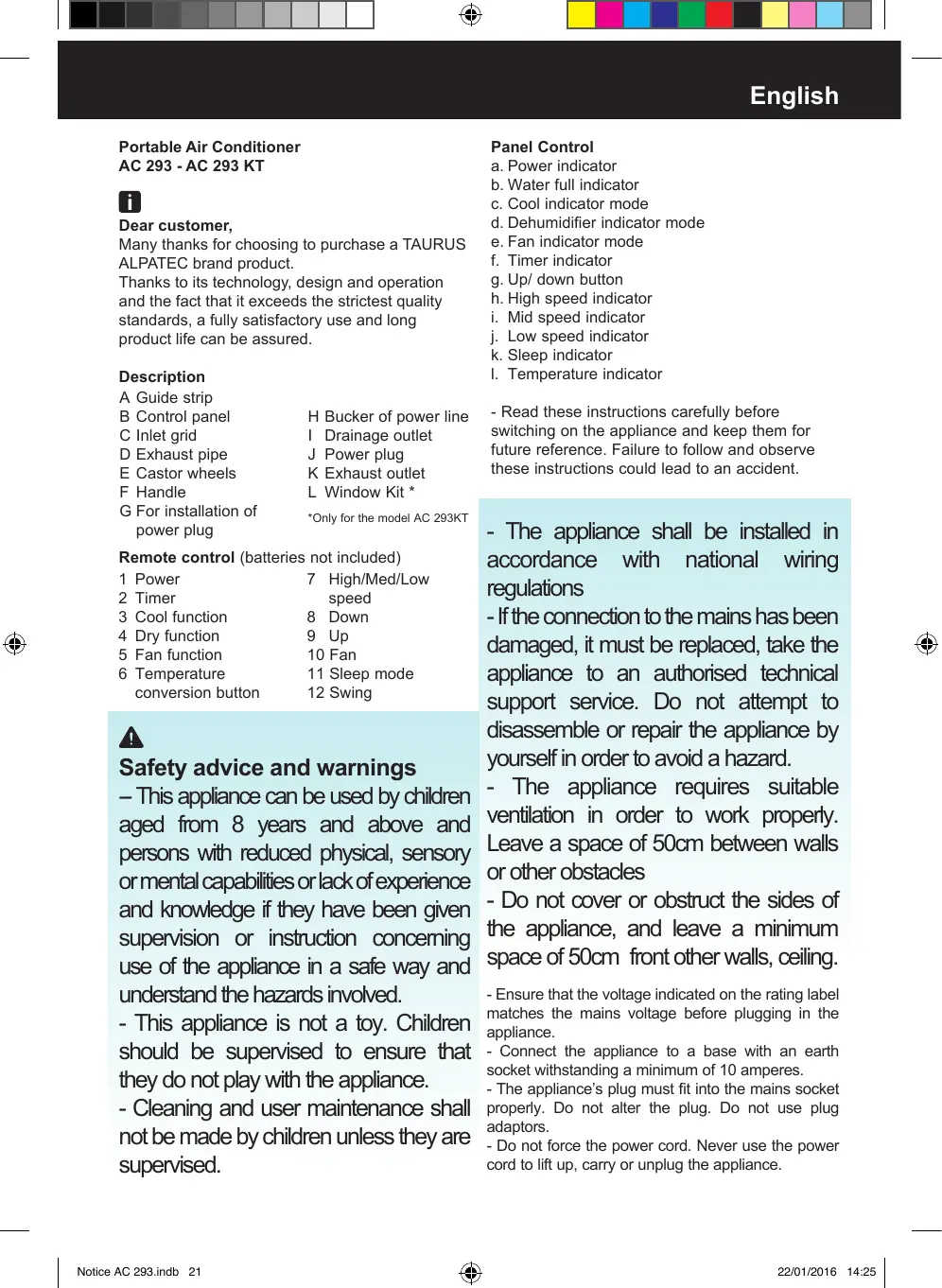 Find the device manual for free HOME AC 293 TAURUS in PDF.