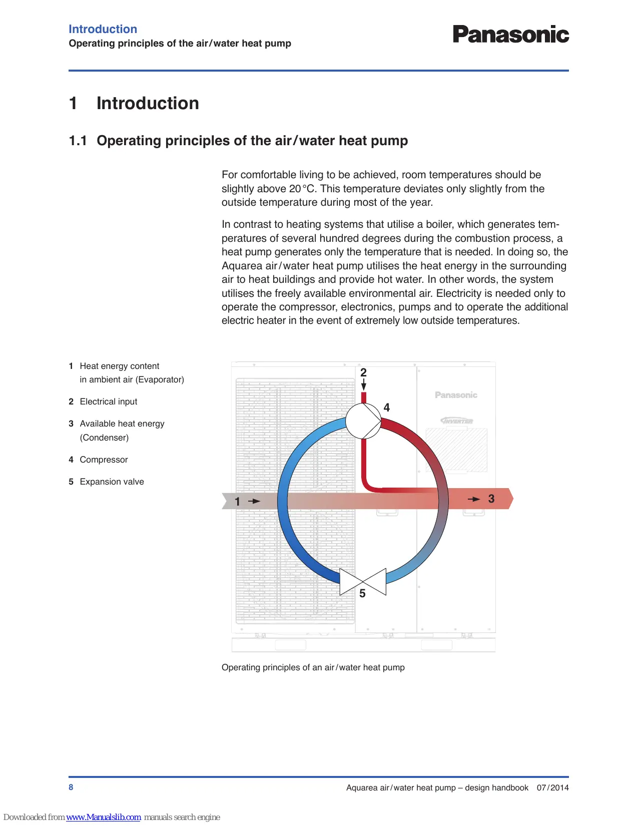 1.3 Economical and environmentally friendly More than 75 % of energy use in the household is used for heating and hot water. At the same time fuel prices (oil, gas, wood pellets) are subject to strong price fluctuations and are becoming increasingly more expensive. In contrast, an Aquarea heat pump utilises up to 80 % free ambient heat can be used. Electrical energy must be used only for the remaining 20 % of the heat pump operation. In comparison with a direct electric heater, the amount of electrical energy used for the same heat production is reduced down to a quarter. In comparison with fossil fuel based heating systems, the dependence on oil price and risky energy imports is therefore reduced. In addition, the share of renewable energy in electricity production today is already about 25 % in the UK and expected to rise. Besides the ambient heat, the electric energy used for heat pumps is increasingly derived from renewable energy sources. Besides low electricity use, a yearly oil or gas service is no longer required. Additionally, the investment costs for an Aquarea air / water heat pump are proportionally lower in comparison to other heating systems with natural gas connection, chimney, oil tank or boreholes. Aquarea heat pumps can optionally be operated also with cooling function and supplemented with a solar system. This allows comfort and efficiency to be increased further.